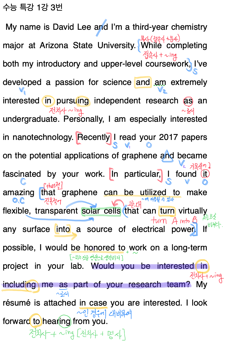 My name is David Lee 저의 이름은 David Lee이고 and I’m a third-year chemistry major 화학 전공 3학년입니다. at Arizona State University. 애리조나 주립대학에서